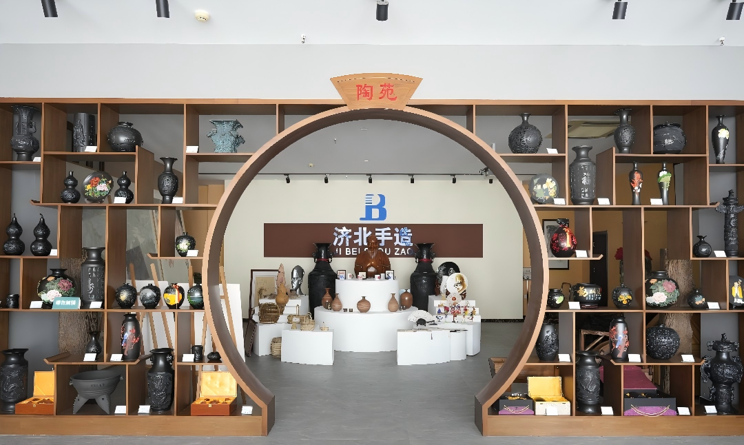 作為濟(jì)陽(yáng)區(qū)非遺文化的重要展示窗口,展廳始終以傳統(tǒng)技藝類產(chǎn)品為核心支柱。升級(jí)后,黑陶的古樸厚重、老粗布的經(jīng)緯溫情、木作的匠心巧思、剪紙的靈動(dòng)鮮活、柳編的自然質(zhì)樸,以及黃河五彩陶、刻瓷、烙畫(huà)、彩塑等十余項(xiàng)代表性非遺手造產(chǎn)品依舊悉數(shù)亮相,每一件作品都承載著當(dāng)?shù)亟橙藬?shù)十年的技藝沉淀,全方位呈現(xiàn)了非遺文化的深厚底蘊(yùn)與獨(dú)特魅力,讓觀眾在參觀中直觀感受傳統(tǒng)手造的文化溫度。