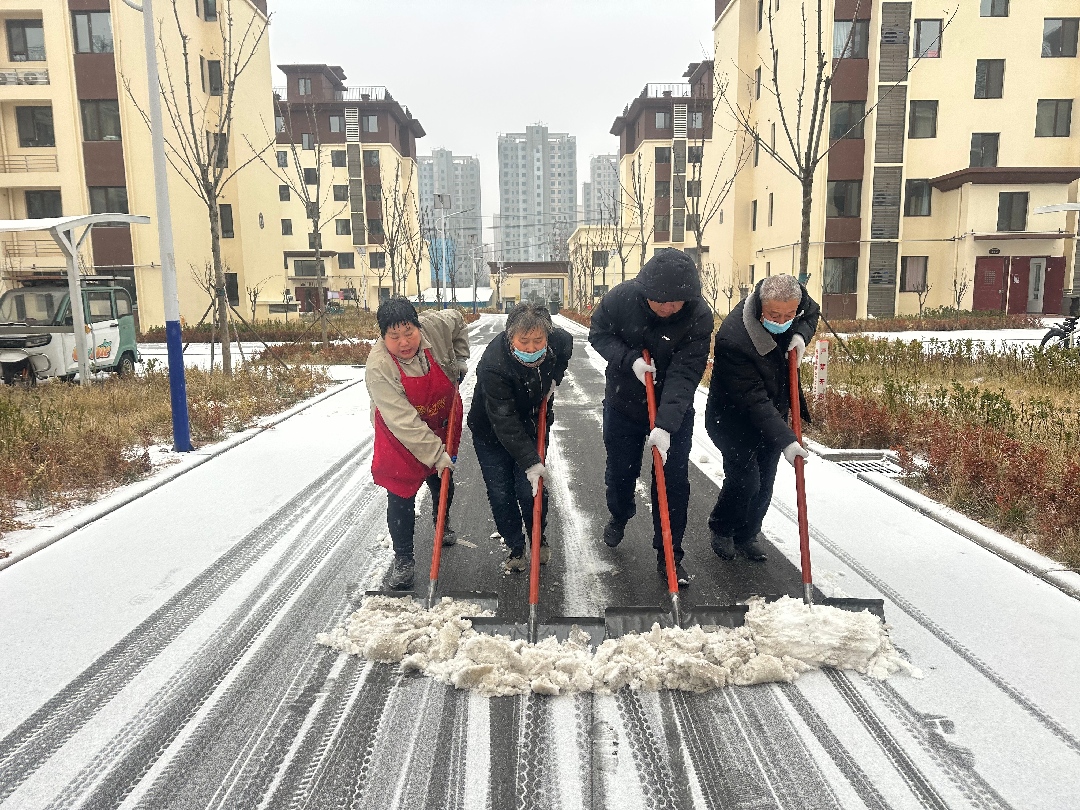 長田物業(yè)北城花園項(xiàng)目部,鼓風(fēng)機(jī)轟鳴作響。以速度對(duì)抗嚴(yán)寒,用設(shè)備助力清雪,積雪消融處,是暢通無阻的坦途,更是刻在骨子里的擔(dān)當(dāng)。