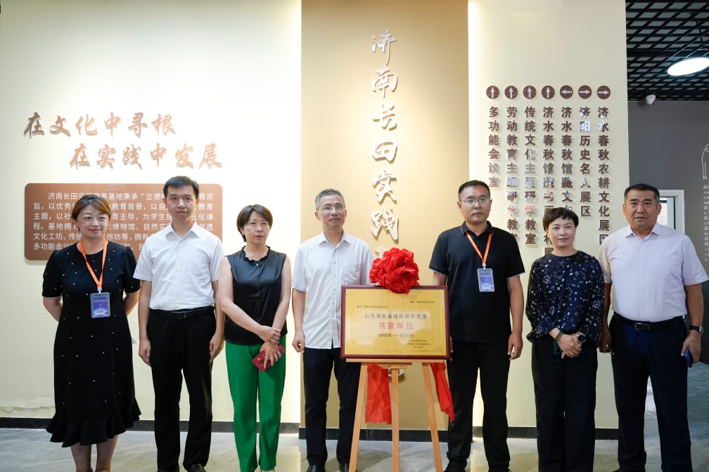 在熱烈的掌聲中,孟部長(zhǎng)與張會(huì)長(zhǎng)共同為基地揭牌。紅綢緩緩落下,“山東省社會(huì)組織研學(xué)資源共建單位”的牌匾在燈光的照耀下熠熠生輝,標(biāo)志著長(zhǎng)田實(shí)踐教育基地在實(shí)踐教育領(lǐng)域邁出了具有里程碑意義的一步。