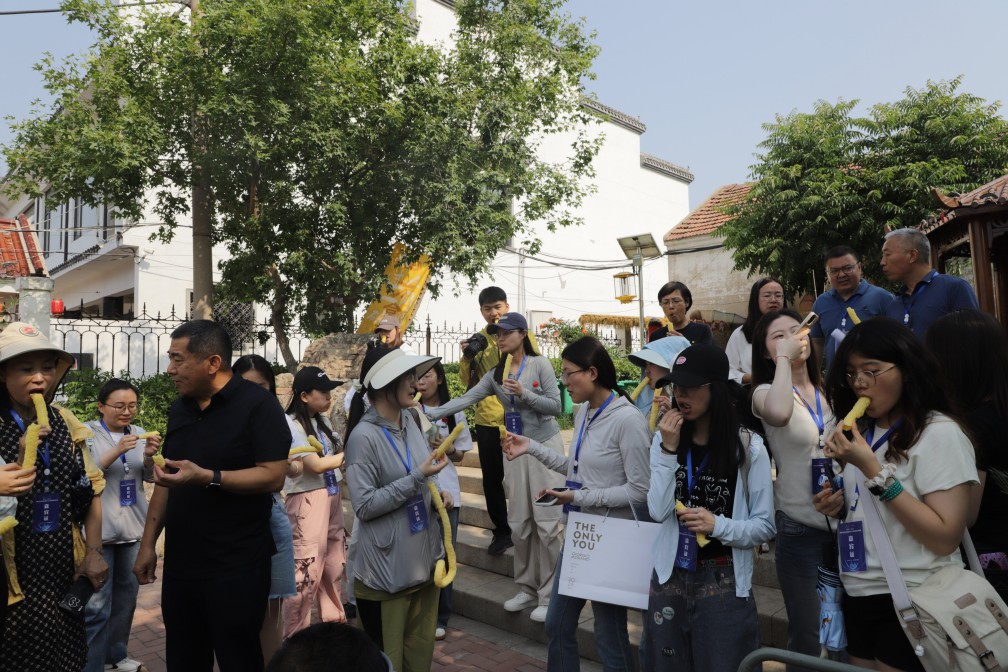 師生們還品嘗了又甜又酥的糖酥棍,這種傳統(tǒng)美食的獨(dú)特風(fēng)味讓他們贊不絕口,并提出了糖酥棍制作工具方面的創(chuàng)新建議。