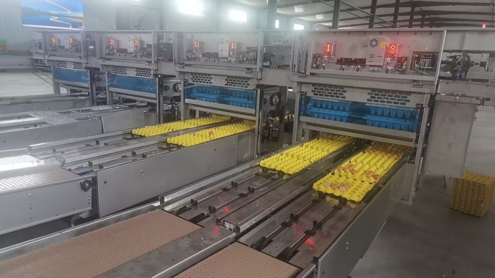 ▲標(biāo)準(zhǔn)化、智能化的雞蛋分揀設(shè)備將雞蛋按照大小、重量進(jìn)行精準(zhǔn)分類