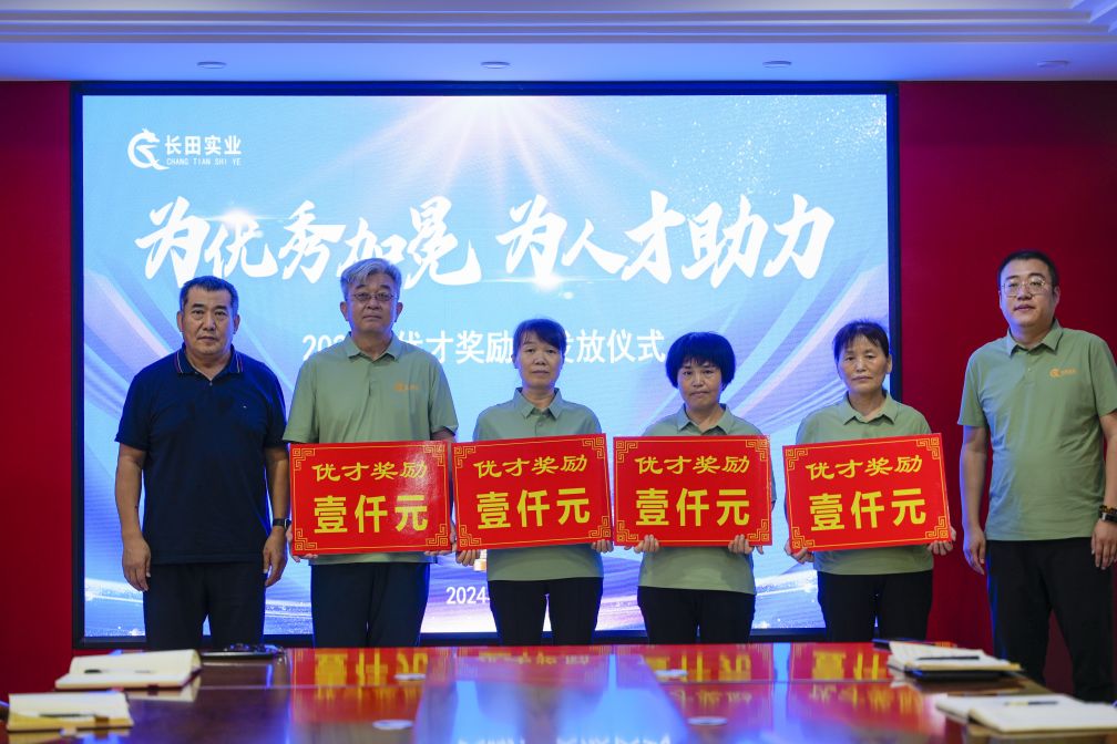 8月26日,長(zhǎng)田實(shí)業(yè)開(kāi)展了2024年優(yōu)才獎(jiǎng)勵(lì)金發(fā)放儀式。今年,是公司連續(xù)第七年舉辦優(yōu)才獎(jiǎng)勵(lì)金的頒發(fā)儀式,共有四名員工獲得該獎(jiǎng)勵(lì),其中一人子女考取了本科,三人子女考取了研究生;長(zhǎng)田實(shí)業(yè)工會(huì)主席、副總經(jīng)理成峻志為他們頒發(fā)優(yōu)才獎(jiǎng)勵(lì)金。隨后黨支部書(shū)記、董事長(zhǎng)張勇與大家共同合影留念。